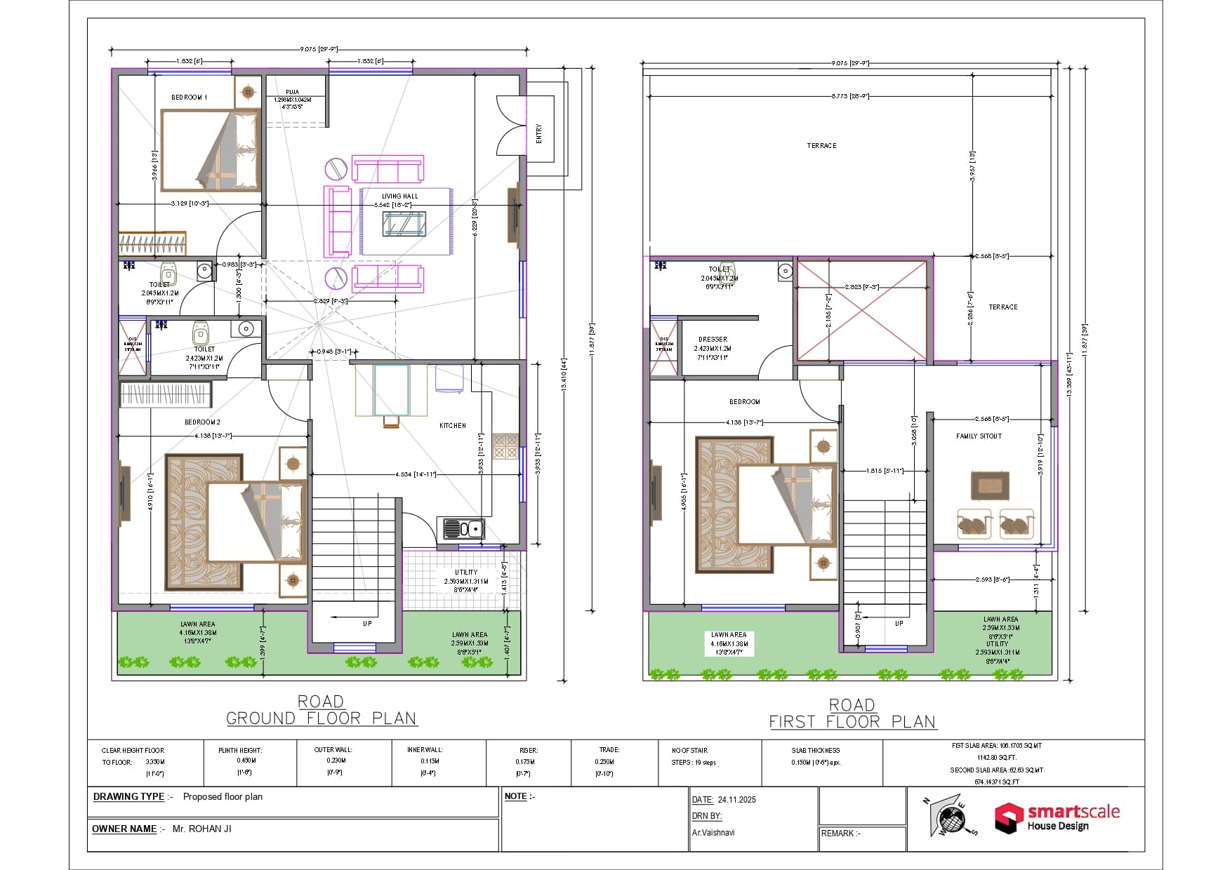 Ground Floor (First Slab): 1,142.80 SQ.FT (106.17 SQ.MT).